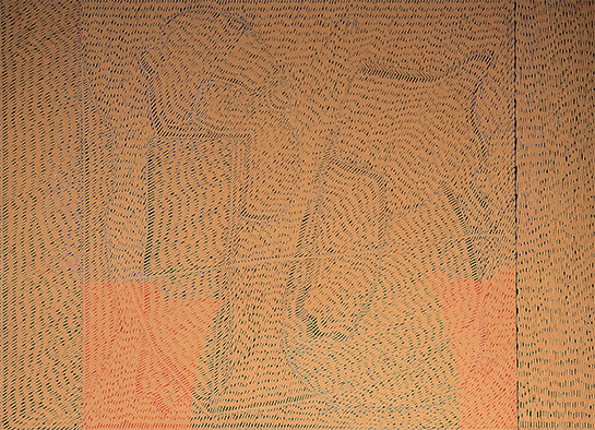Anamnèse pigments, caséine, entaillée sur bois, 86 x 116 cm 2000