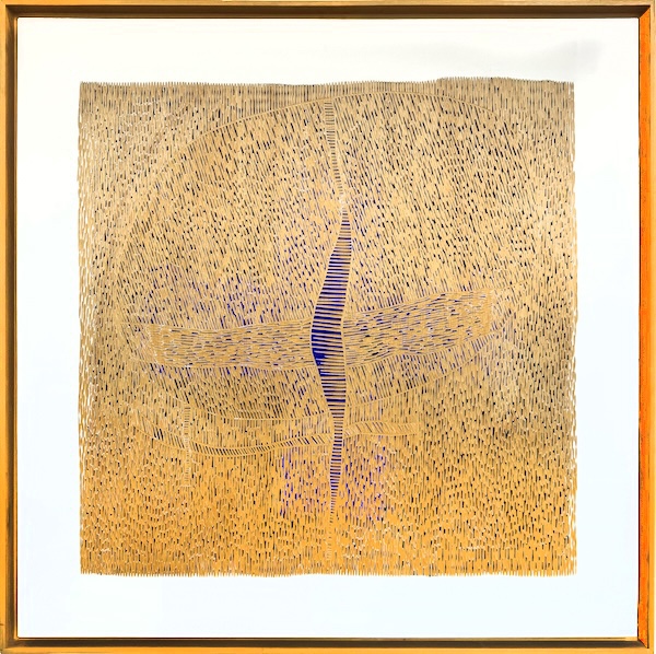 DAVID Pierre, Okapi, Feuilles d'or et pigment de fresque sur Bois, 130x130cm, 2002