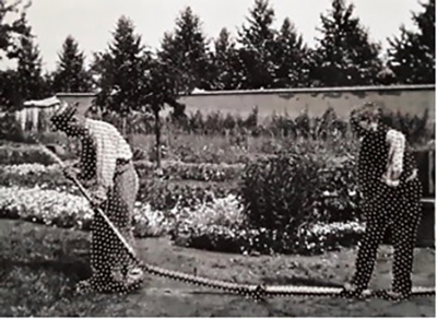 VASSAL Éric, d'après L'arroseur arrosé 1895, photographie et épingles, sous cadre vitrine 42 x 52,5 cm.